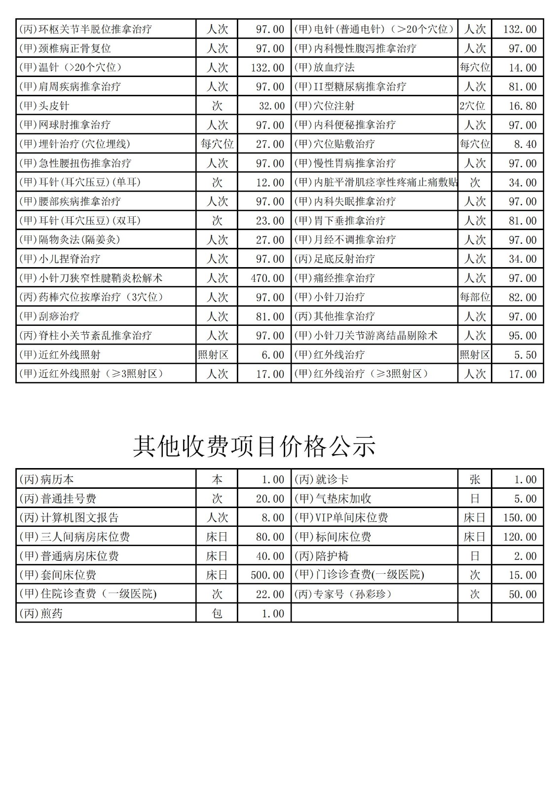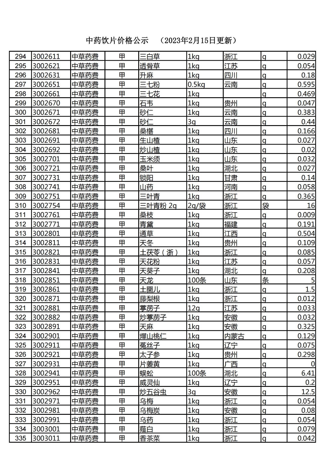 价格公示